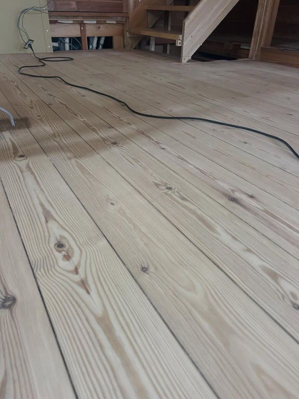 築24年の無垢の床板を研磨中。