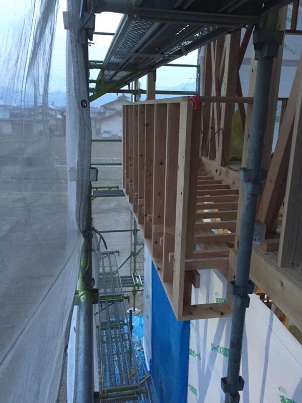 T邸にて、ベランダの床組を作っています。 だんだん形になってきました。
