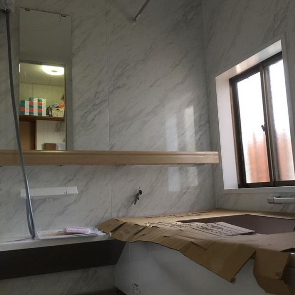 S邸にて、 ユニットバスの組み立てが終わり大工工事が終わりました。 明日電気、設備工事をしてお風呂に入れる様にします。
