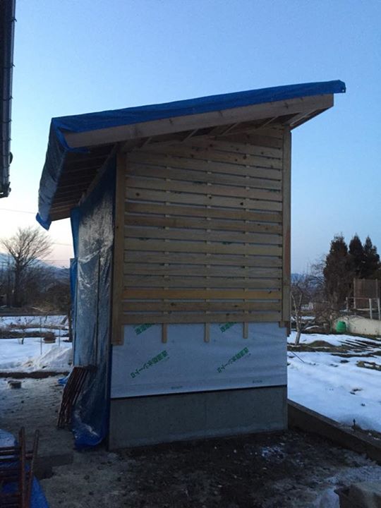 N邸にて、物置工事をしています。 天気に恵まれ大分はかどりました。